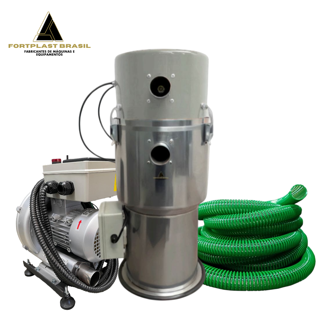 O Alimentador Fortplast elimina o transporte manual e garante fornecimento contínuo de matéria-prima para sua máquina.